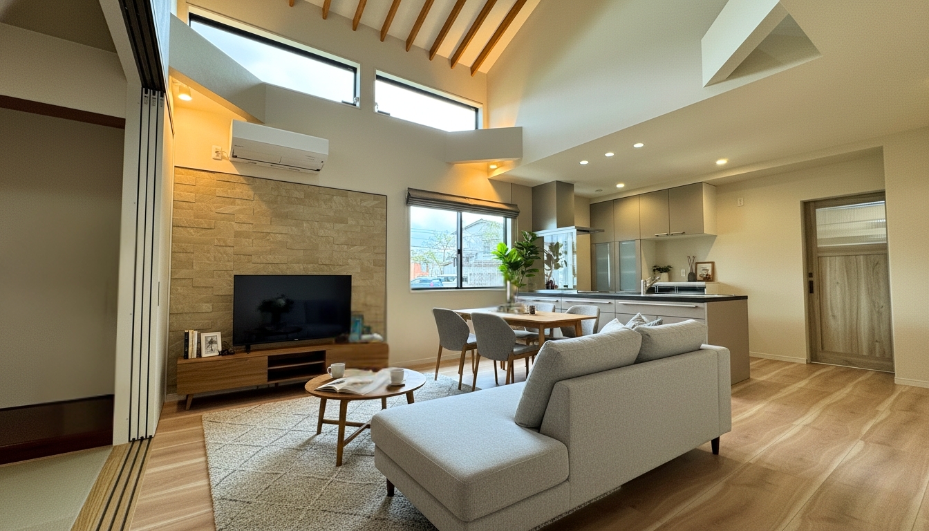 長年連れ添ったご夫婦と大切なご家族が末永く安心して暮らせる、心温まる住空間。採光窓と吹き抜けがもたらす明るく開放的なLDKは、隣接する和室との間仕切りを開放すればさらに広々とした空間に。家族の団らんやおもてなしにも最適です。